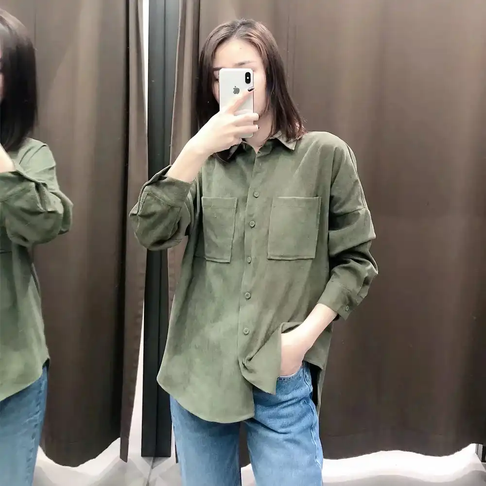 Za Camisa De Pana Verde Para Mujer Abrigo Basico Prendas De Vestir Moda Informal Chaqueta Femenina Primavera 2020 Chaquetas Basicas Aliexpress