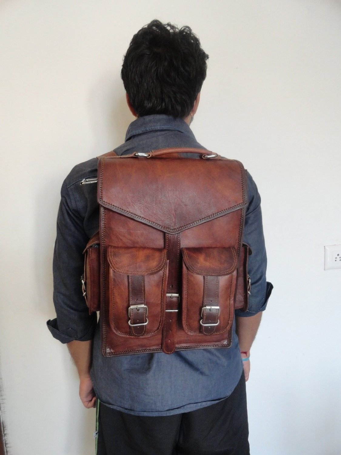 Shreenath Enterprises 15vintage Cuero Para Hombre Portatil Mochila Bandolera Bandolera Bandolera Para 2 En 1 Proposito Equipaje Bolsos Bandolera